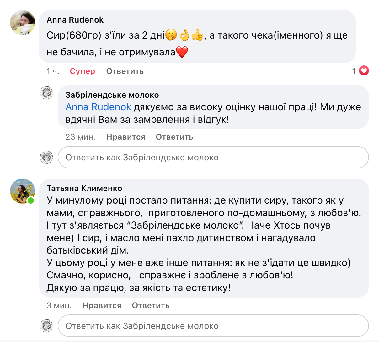 Перелік наявних продуктів публікується в телеграм-чаті «Забрілендське молоко» кожну середу о 08:00